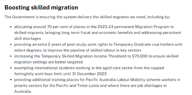 ②為擁有特定學位的臨時畢業生簽證持有者提供額外的兩年學習后工作權利,以改善關鍵部門的技術勞工渠道將臨時技術移民的收入門檻提高到7萬新元,以確保技術移民設置更有針對性。從目前的53,900澳元提高到70,000澳元。收入門檻在凍結十年后迎來了大幅度增長,預計每年將會有超過3萬的低收入移民被新門檻攔住。這是近十年以來的唯一一次更新。