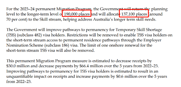 ⑦臨時技能短缺(TSS)482簽證持有者申請永久居民簽證的途徑得到改善。最遲2023年底,TSS簽證持有人可享受以下兩大福音: