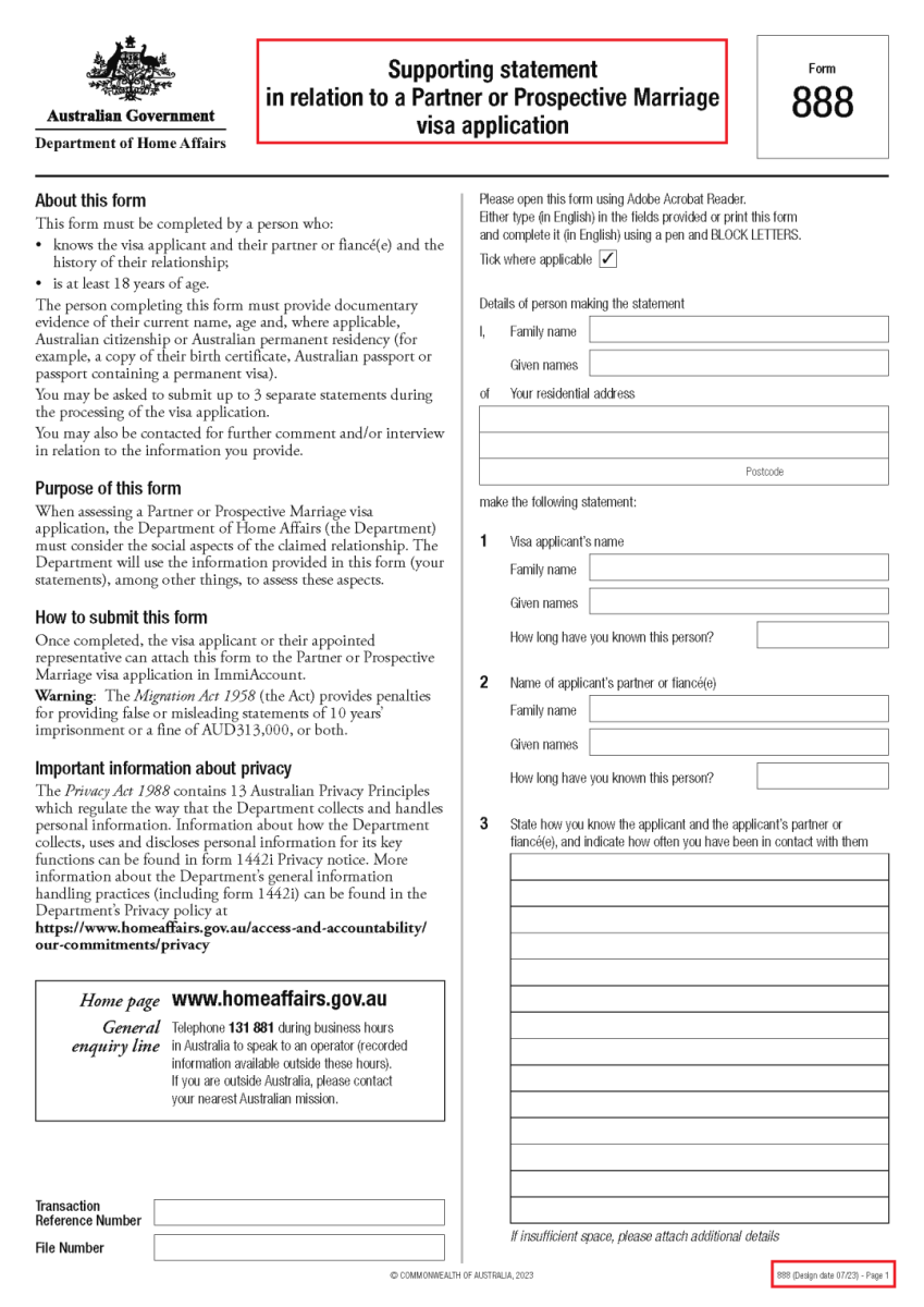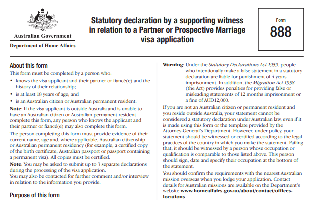 想要申請澳洲配偶移民,那888表格就必不可缺,是極其重要的文件,申請人需要找兩個有澳洲身份的證明人填寫888表格。