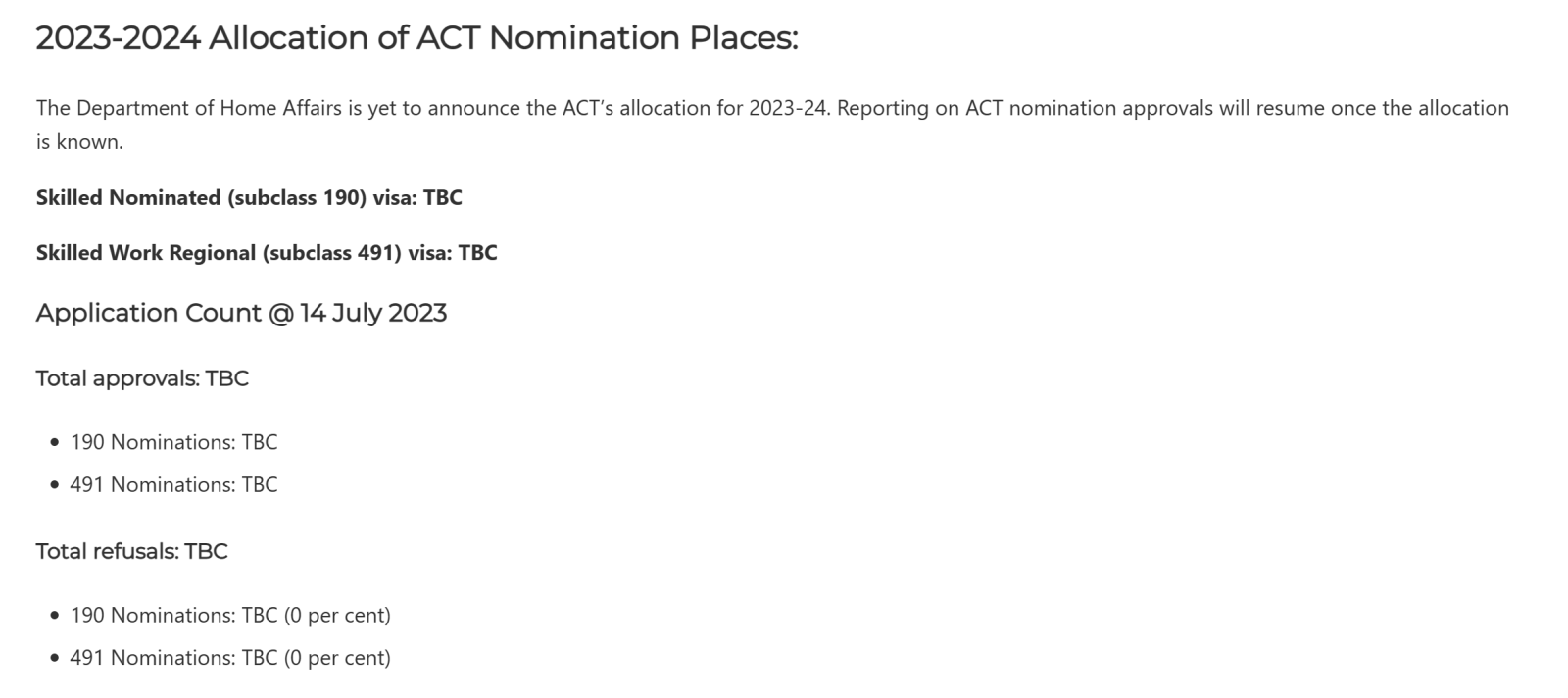 ACT雖然目前還沒有拿到聯(lián)邦分配的州擔(dān)配額,但是根據(jù)以往堪培拉按年度分配比例的慣例,每月都會有固定數(shù)量的提名名額。
