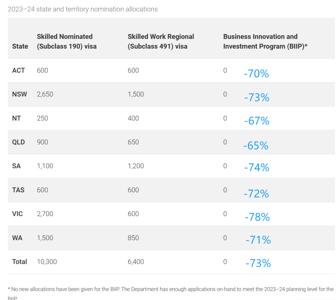 2022-23財年全澳190是總計38133個配額,491是24283個配額,商業(yè)移民810個配額。