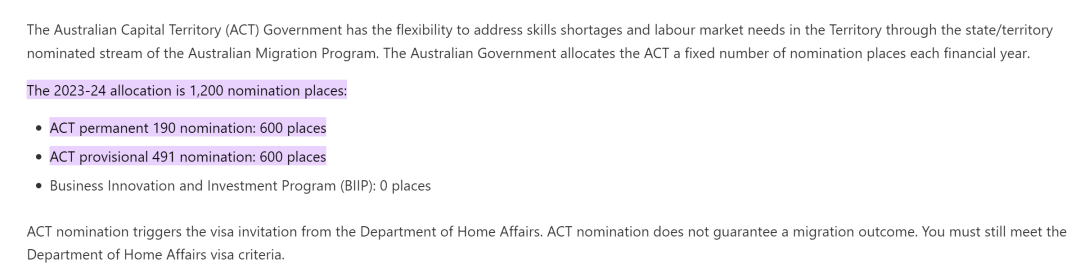 ACT本財年首先正式宣布技術(shù)移民擔(dān)保配額的州,在官網(wǎng)上公布了明確的數(shù)字。