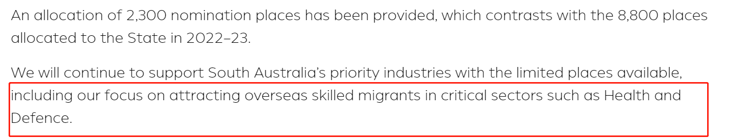 8月底時(shí),南澳州政府的官網(wǎng)已表示,在有限的配額內(nèi)會(huì)繼續(xù)支持南澳的優(yōu)先產(chǎn)業(yè),包括重點(diǎn)吸引大健康和國(guó)防等關(guān)鍵領(lǐng)域的海外技術(shù)移民。