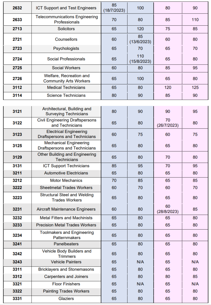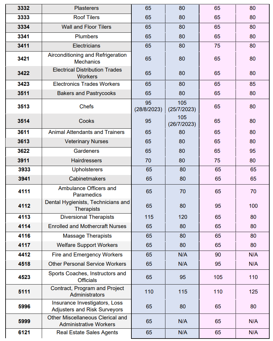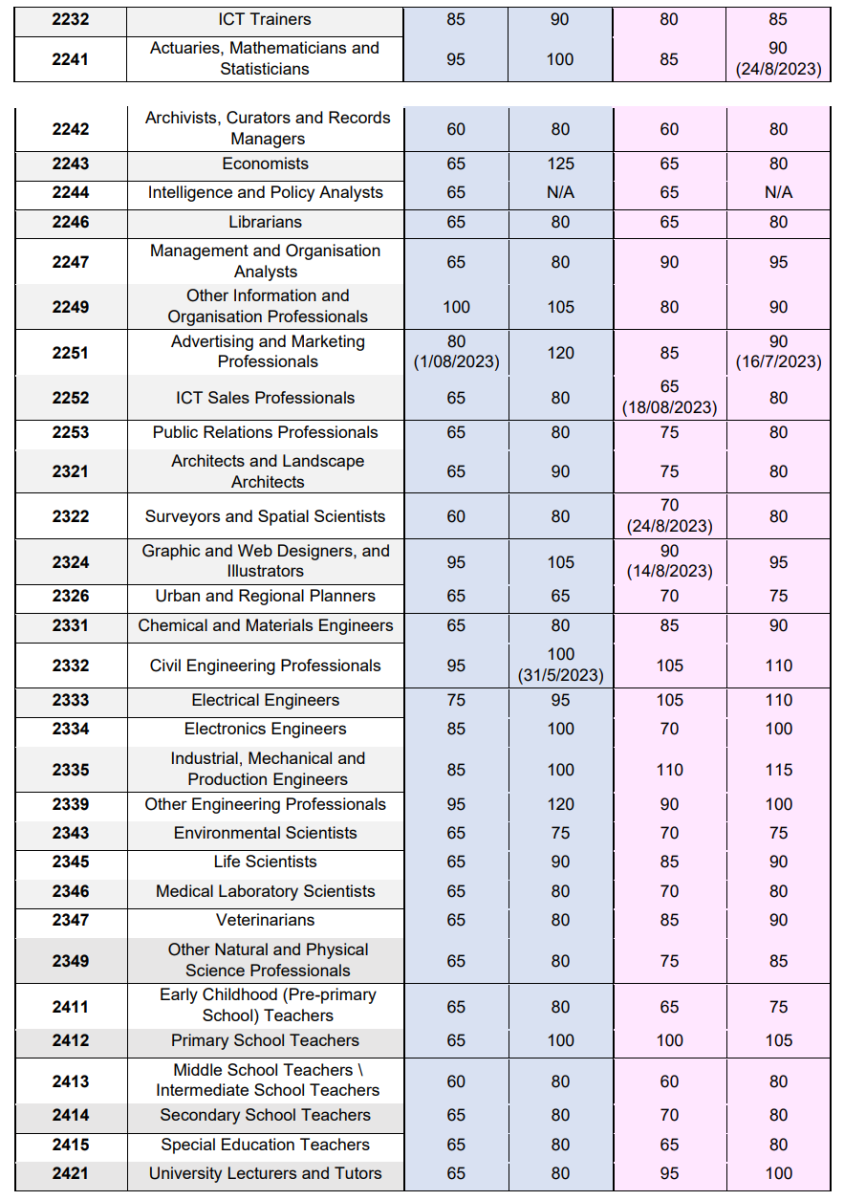 如州政府所說,在配額縮減后勢必會上漲分數優中選優。亮點在于Social Professionals翻譯類/ Journalists and Other Writers記者/ Conference and Event Organisers會議組織者/ ICT Sales Professionals ICT行業銷售/ Urban and Regional Planners城市規劃師可以65-85分低分撿漏。