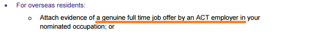 海外申請者需要有的工作Offer,必須為全職工作Offer。