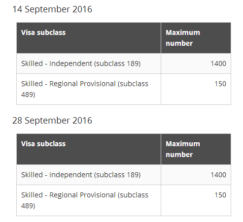 9月份移民局EOI邀請計劃終于千呼萬喚始出來,下一輪將于本周三于9月14日發出,還有一輪將于9月28日發出。分別都將發出1400份189簽證邀請,150份489簽證邀請。