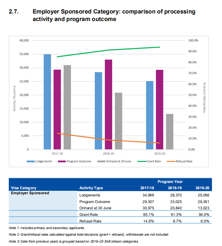 下圖是2019-20財(cái)年的澳洲移民官方報(bào)告。