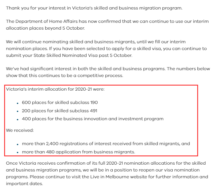 并在9月8號----9月21號下午五點短暫開放了一周,要求申請人從事健康或醫學研究類工作,目前正在維州本地居住并工作至少6個月。維州政府表示共收到2400個技術移民申請,480個投資移民申請。
