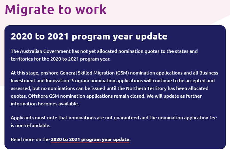 堪培拉在過渡期收到臨時移民配額,190是250個,491是45個,BIIP 4個。