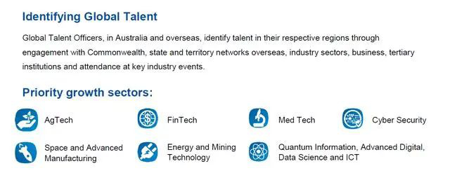 GTI項目無年齡限制、無需英語成績、無需職業評估、無家庭資產要求、無需EOI打分、不受職業清單限制。GTI全稱是Global Talent Independent Program,即為全球人才獨立計劃,重點就是‘人才’二字,主要針對的是具有博士學位或研究型碩士學位的申請人。申請人須在移民局指定的7個目標行業之一具有較高的技能并獲得國際認可/做出突出成就,并被同行業有一定成就或有影響力的澳洲PR/公民或新西蘭公民或澳洲機構提名。